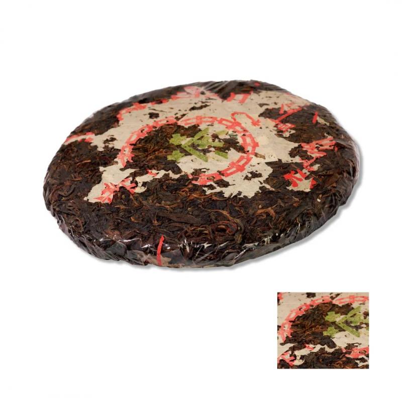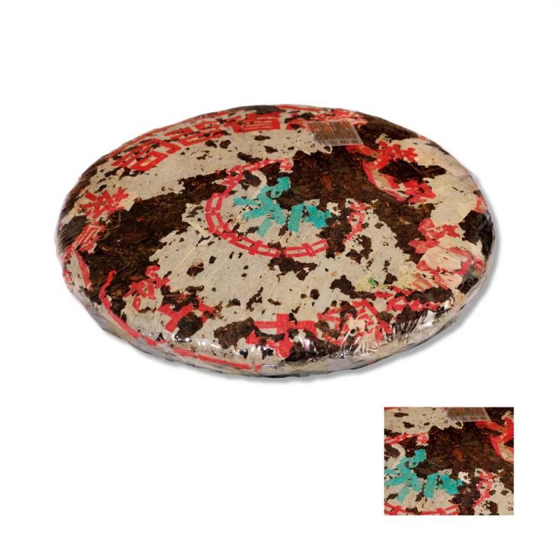 「红色茶字的普洱圆茶,