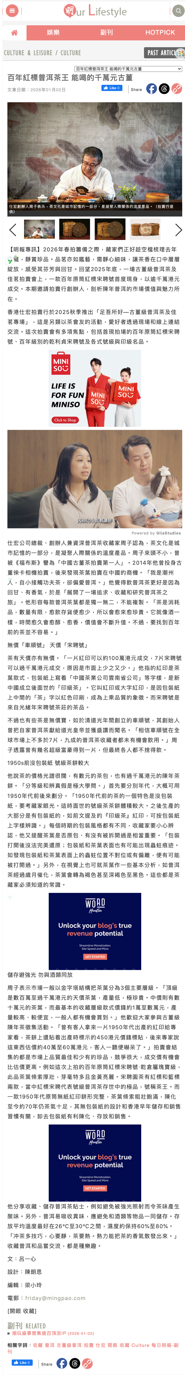 (Chinese Only)《明報》百年紅標普洱茶王 能喝的千萬元古董