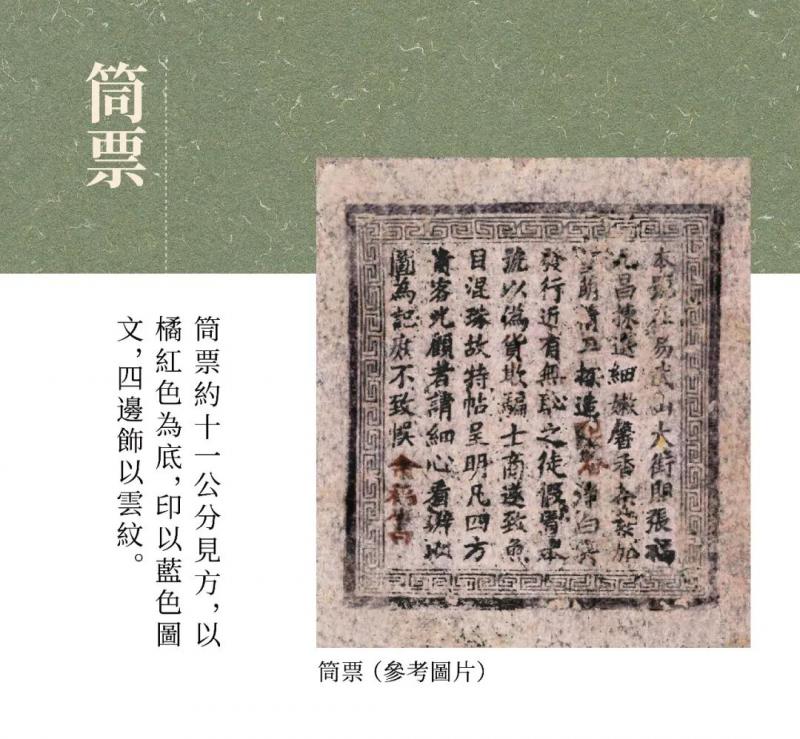 福元昌圓茶最為人津津樂道的,莫過於那三色內飛。按內飛顏色可分為三種:紅紫色者為「紫標」,淺藍綠色者為「綠標」,白色者為「白標」。三種內飛皆加蓋硃砂紅印,紫標與綠標性味剛強猛烈,白標則較為柔和。這三色內飛,成了後人辨識福元昌號的重要印記,也為這款茶增添了幾分傳奇色彩。莊主餘福生深知自家茶的質量,遂於每筒茶中放置筒票及內飛。內飛上寫著:「本號在易武大街開張福元昌記,專辦普洱正山地道細嫩尖芽加工督造,歷年已入,遠近馳名,誠信假冒,故特加此內票,以杜蒙混。主人餘福生。」筒票則約十一公分見方,以橘紅色為底,印以藍色圖文,四邊飾以雲紋,內書:「本號在易武山大街開張,福元昌揀選細嫩馨香茶葉,加重萌精工揉造,陽春淨白尖……」有趣的是,筒票和內飛的圖字都是以手工刻章印出,別具意義與價值。而這些內飛、筒票多是用糯米紙製成,歲月流轉間,多半已被蟲蛀蝕,難以完整保留。正因如此,今日能見到完整內飛的福元昌圓茶,格外珍貴。