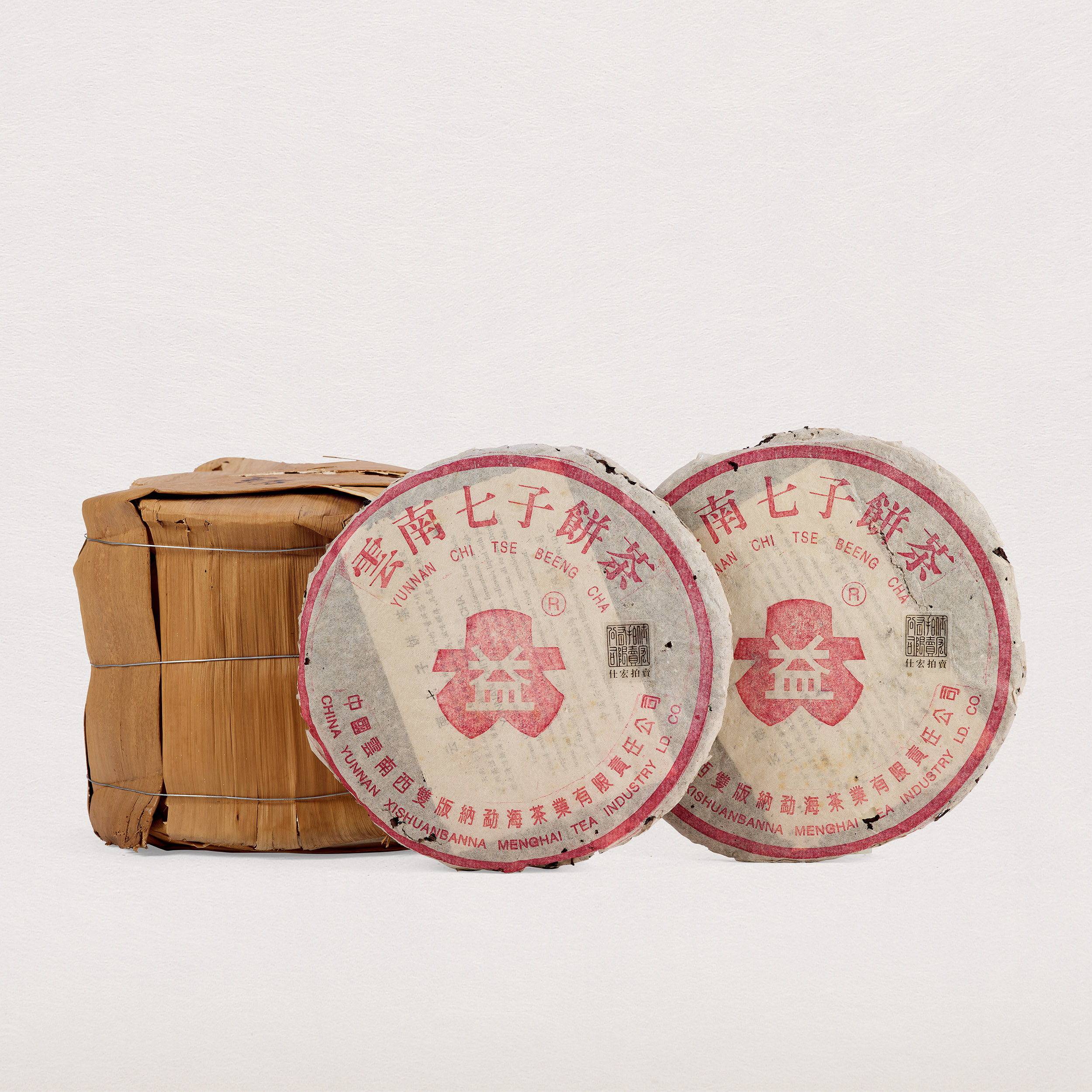 96紫大益青餅一筒七片,純乾倉存儲,是首次使用大益商標的茶品,並將常規茶印成玫瑰紫色外包裝,別具歷史意義。為令首款大益品牌茶一鳴驚人,拼配格外用心,原料配方有別於傳統7542,精選質優味釅原料。隨歲月陳化,成為帶有體感、茶氣及老茶口感。紫大益陳化後茶韻有88青7542配方基調,同時具備當下最受熱捧自然班章煙燻味。