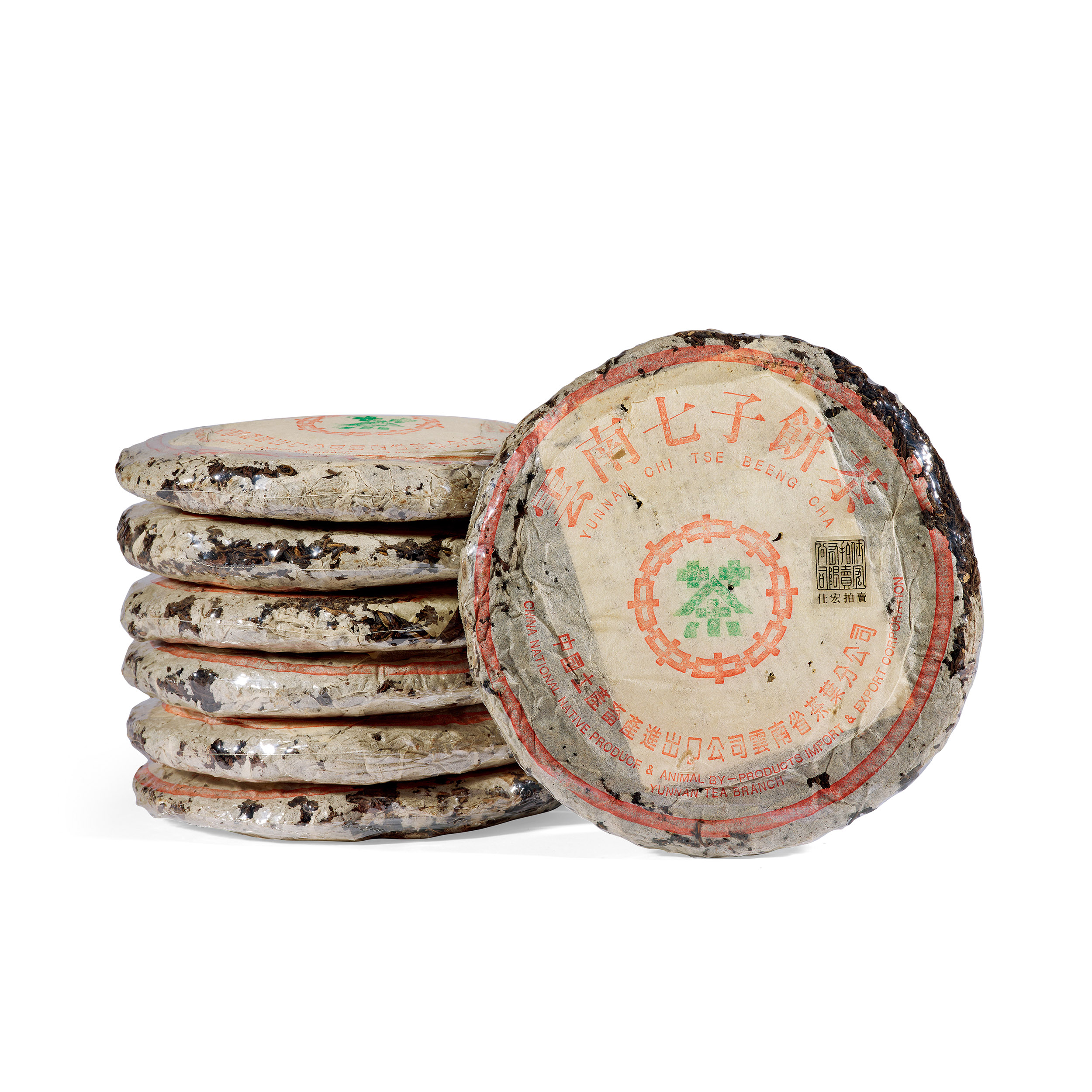 1995年8582大葉青餅七片,純乾倉倉儲,極薄棉紙外包,水藍印八中茶字,餅身較厚,餅身更為疏鬆透氣,有利加速陳化,見內飛為勐海茶廠繁體廠字內飛。每片約385克之間。依照八十年代經典8582配方拼配,採用勐海喬木大葉種,茶菁葉大肥厚。經過三十年陳化,茶品帶有木香樟香,層次豐富,生津回甘,茶質上佳,茶質隨陳化時間日久,潛力可期。