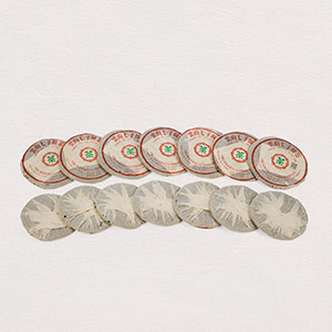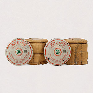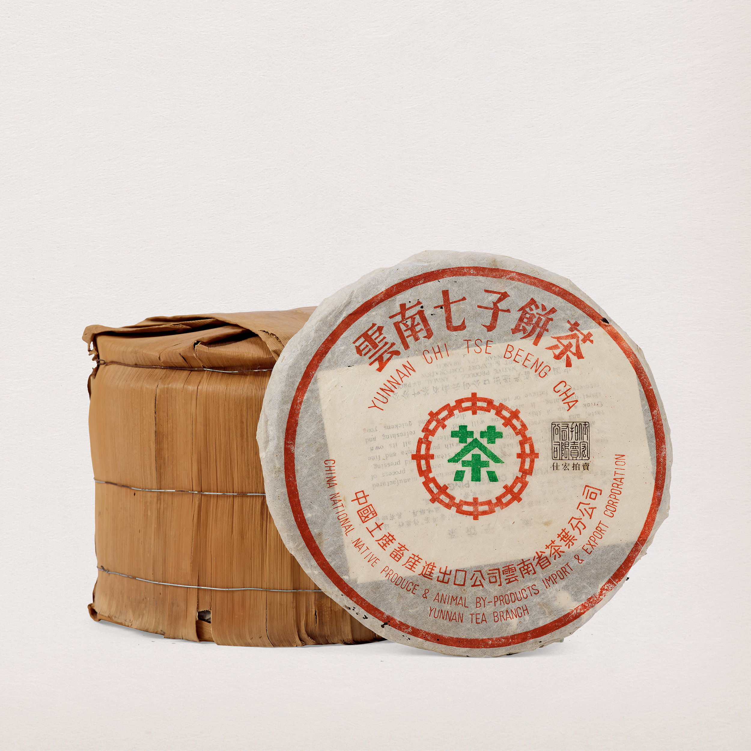 八十年代末88青餅,乾倉保存,原包完整,標準88青蘋果綠。88青為勐海茶廠八十年代末以7542配方生產,茶餅以中壯葉為主體,嫩芽鋪面,88青貴為茶商加封及乾倉概念之鼻祖,有經典梅子香韻,質感強勁厚重,生津回甘快。88青餅生產年份橫跨數年,茶菁更是勐海茶廠存放多年的老茶菁,茶底優越,陳化風味獨特,變化豐富,備受熱捧。