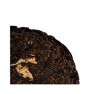 四十年代小票敬昌號,一片乾倉保存,餅面完整厚實,保存良好,敬昌號內飛有大小兩式,人稱大票、小票,右方寫「本號內飛以往太大,為觀瞻起見」,左方寫「茲改良縮小,茶品尤佳,特此聲明」,小票版敬昌號屬於後續改良精進版。選料精良、茶餅表面條索金黃,特色鮮明。其做工和包裝優美之極,尤其壓製技術一流,餅體飽滿圓潤,凹凸有致,排列清晰,形態之美無與倫比。現存敬昌號多屬世紀年代產品,有野樟香氣,水性極為細膩柔和,為號級普洱茶品中最為細滑者。