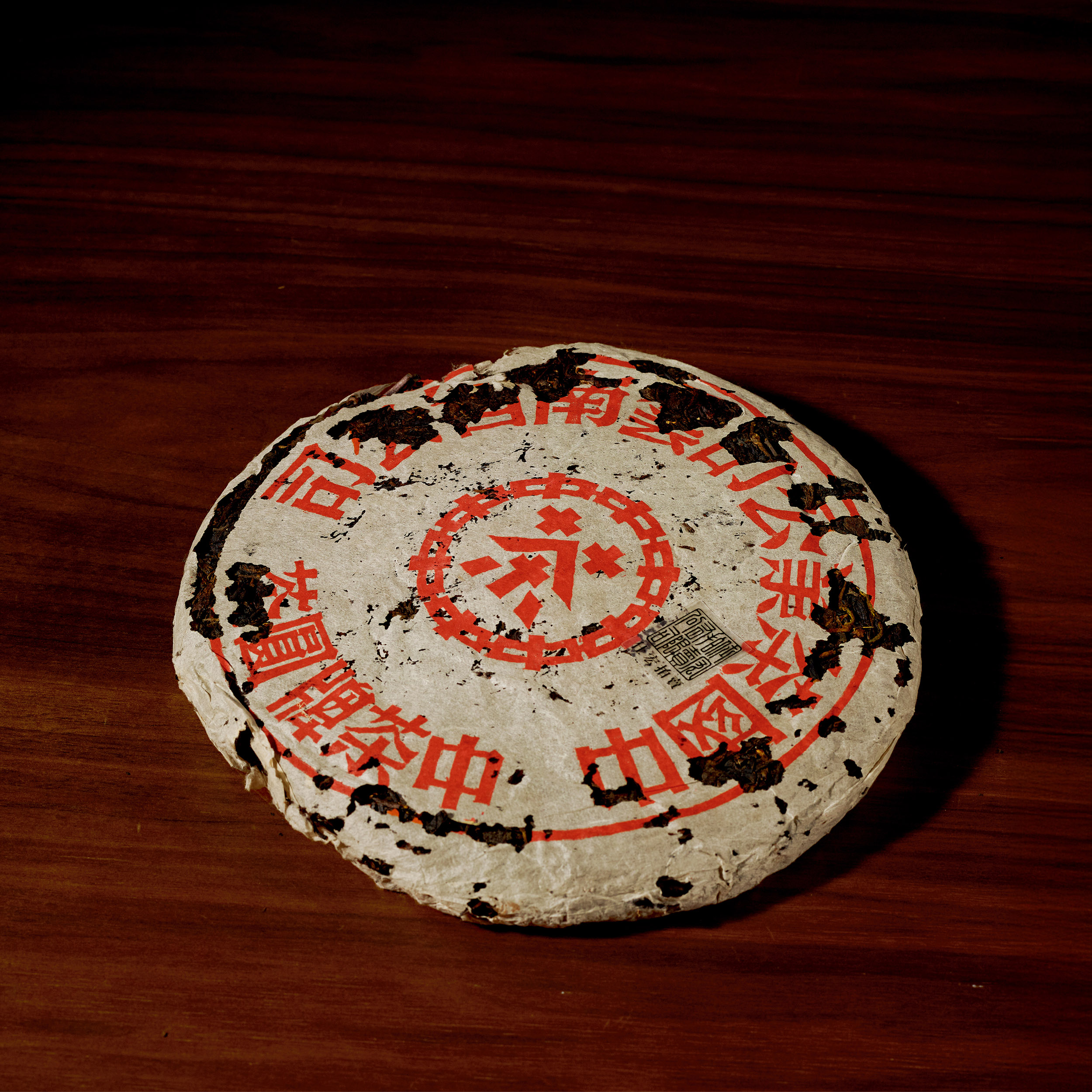 五十年代紅印青餅原筒七片,純乾倉/乾倉保存,均原封原包,市面上極為稀少的佳茗。五十年代的紅印,是印級茶鼻祖,紅印使用頂尖易武大葉茶菁和傳統工藝,並滲有蘭香或野生樟香味,採用猛海產區易武茶山大葉種茶樹製,加重萌芽的用量,嚴謹芽葉配比及壓製發酵方法,擁有印級茶細膩口感。紅印圓茶為范和鈞先生匠心而制,用作中茶雲南省公司成立紀念茶,有現代貢茶之美譽。1949年新中國成立後首批普洱茶品。半世紀陳化的紅印,茶氣十足,茶韻豐富,舌底鳴泉、紅印圓茶久經耐泡,二十泡後依舊有頂級印級茶之餘韻,厚度依舊。為印級茶始祖,被譽為「可以喝的古董」。