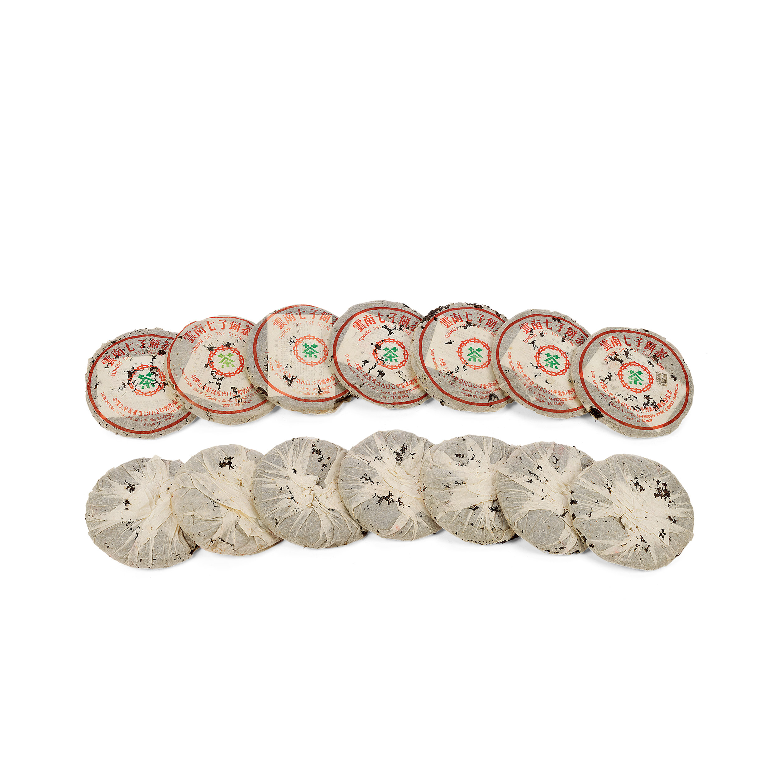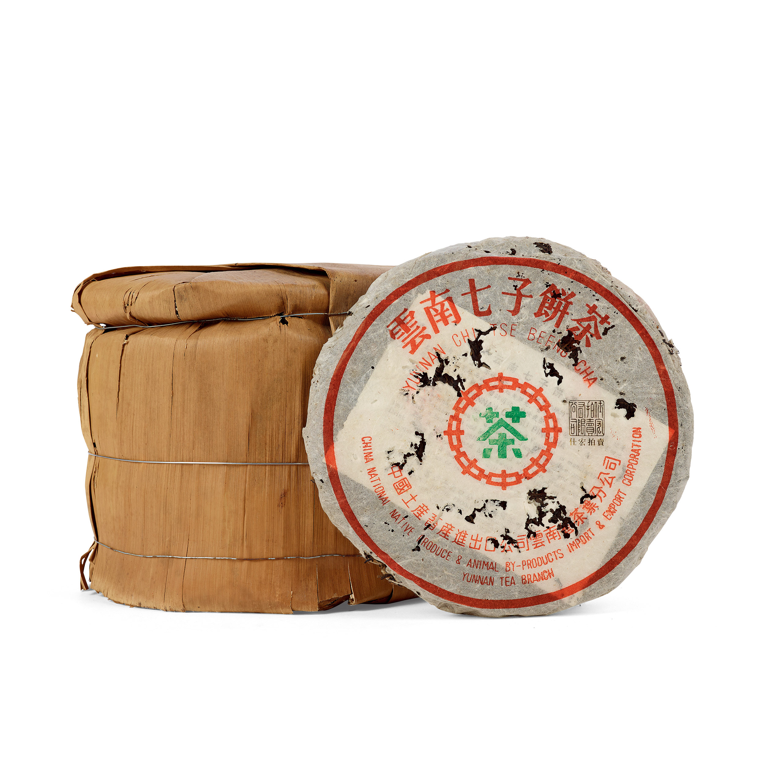八十年代末88青餅,自然倉,一筒七片,88青為勐海茶廠八十年代末以7542配方生產,茶餅以中壯葉為主體,嫩芽鋪面,88青貴為茶商加封及乾倉概念之鼻祖,有經典梅子香韻,質感強勁厚重,生津回甘快。88青餅生產年份橫跨數年,茶菁更是勐海茶廠存放多年的老茶菁,茶底優越,陳化風味獨特,變化豐富,備受熱捧。