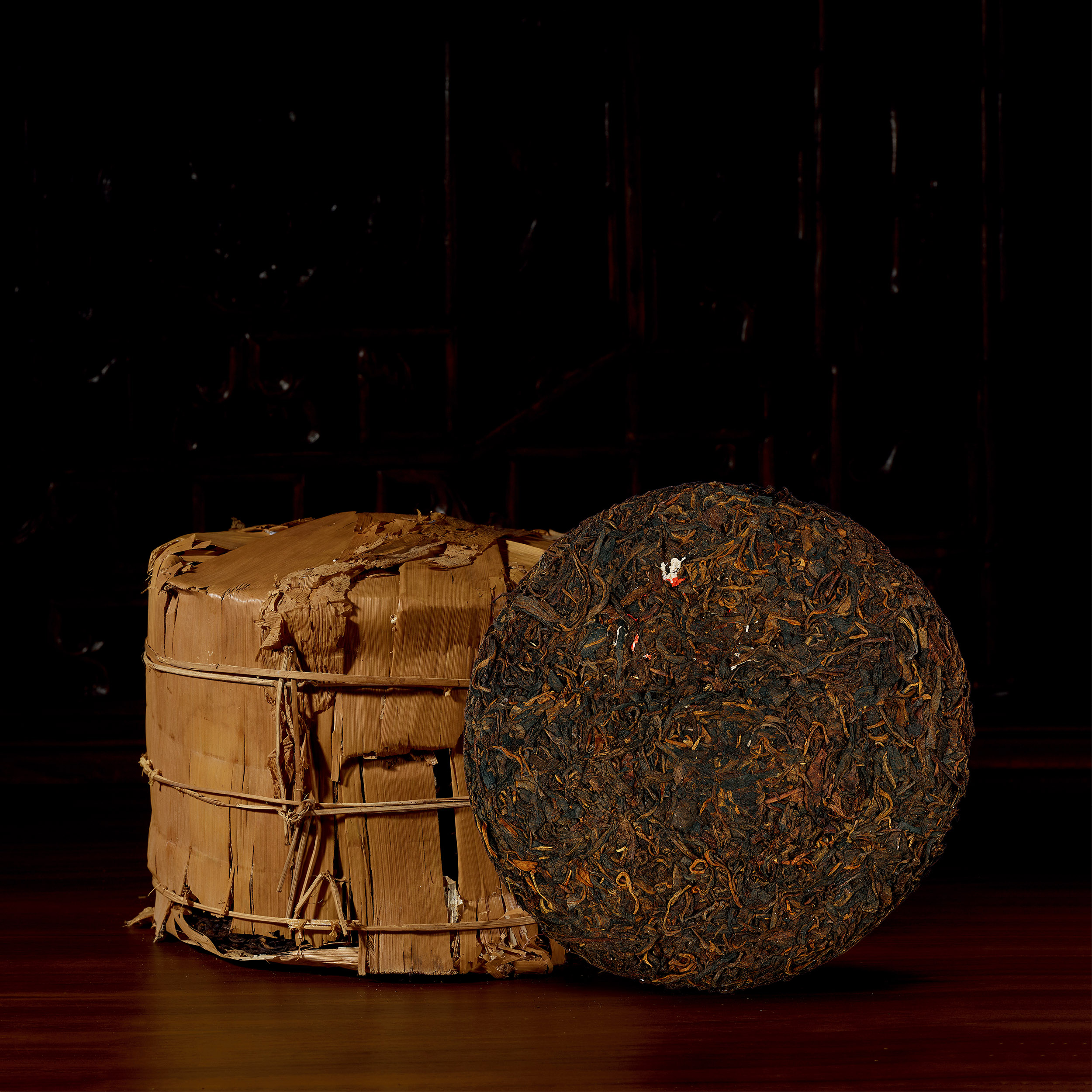 此五十年代無紙紅印,原筒七片,偏乾倉儲,餅形完整,條索粗壯飽滿,選用猛臘野放老樹茶菁,舊式技藝壓模,餅麵茶面明顯精工揉製,兼有蘭樟之香。陳化至今近七十載,茶氣十足,茶韻醇厚,輕微雜味。據載,無紙紅印之所以無包裝紙是與香港早年儲存和銷售習慣有關,卸去包裝紙更有利陳化、存放和銷售。時至今日,無紙紅印成為號級茶的承接者,印級茶中的瑰寶,在普洱界中無人不曉。市面上越趨稀少,深受藏家追捧。