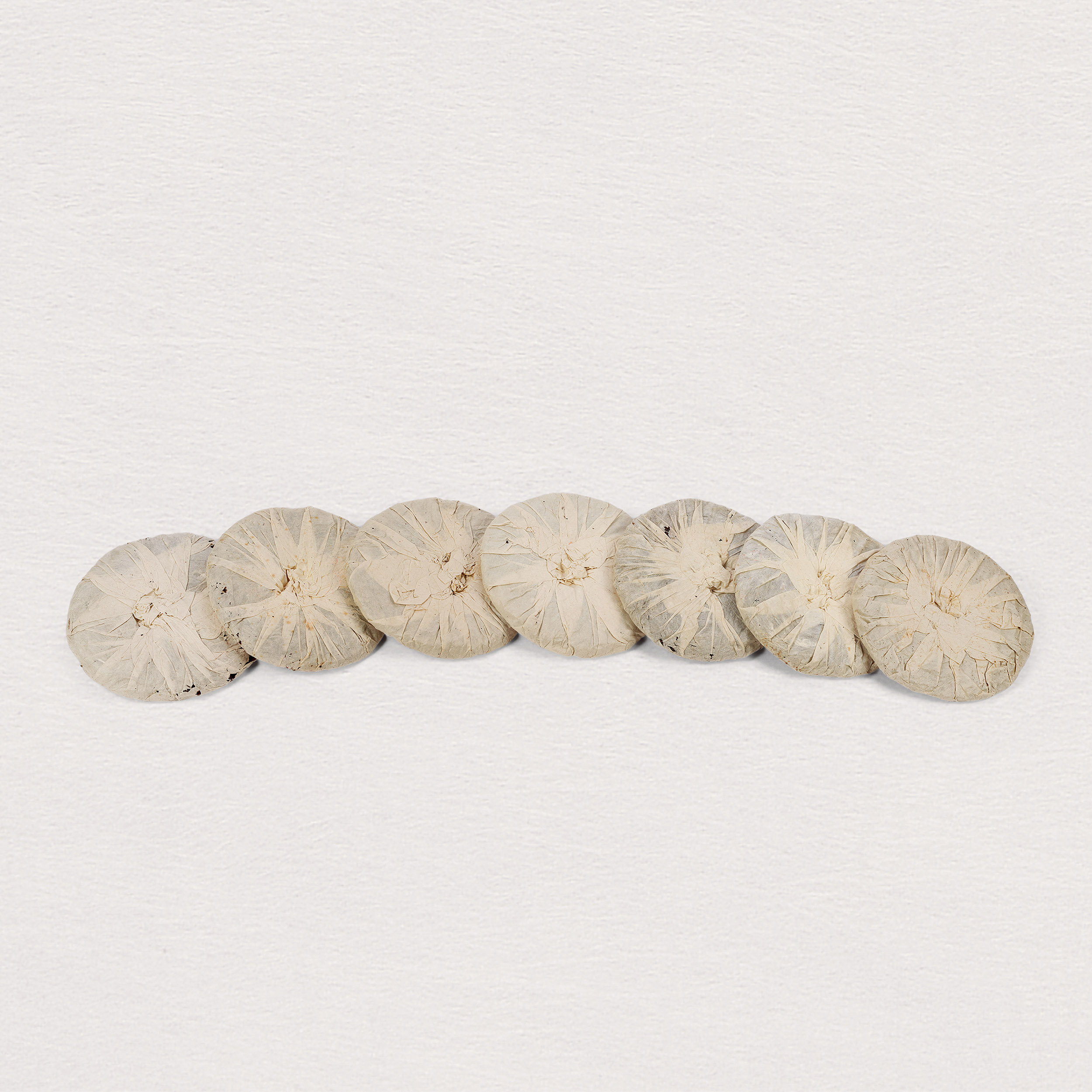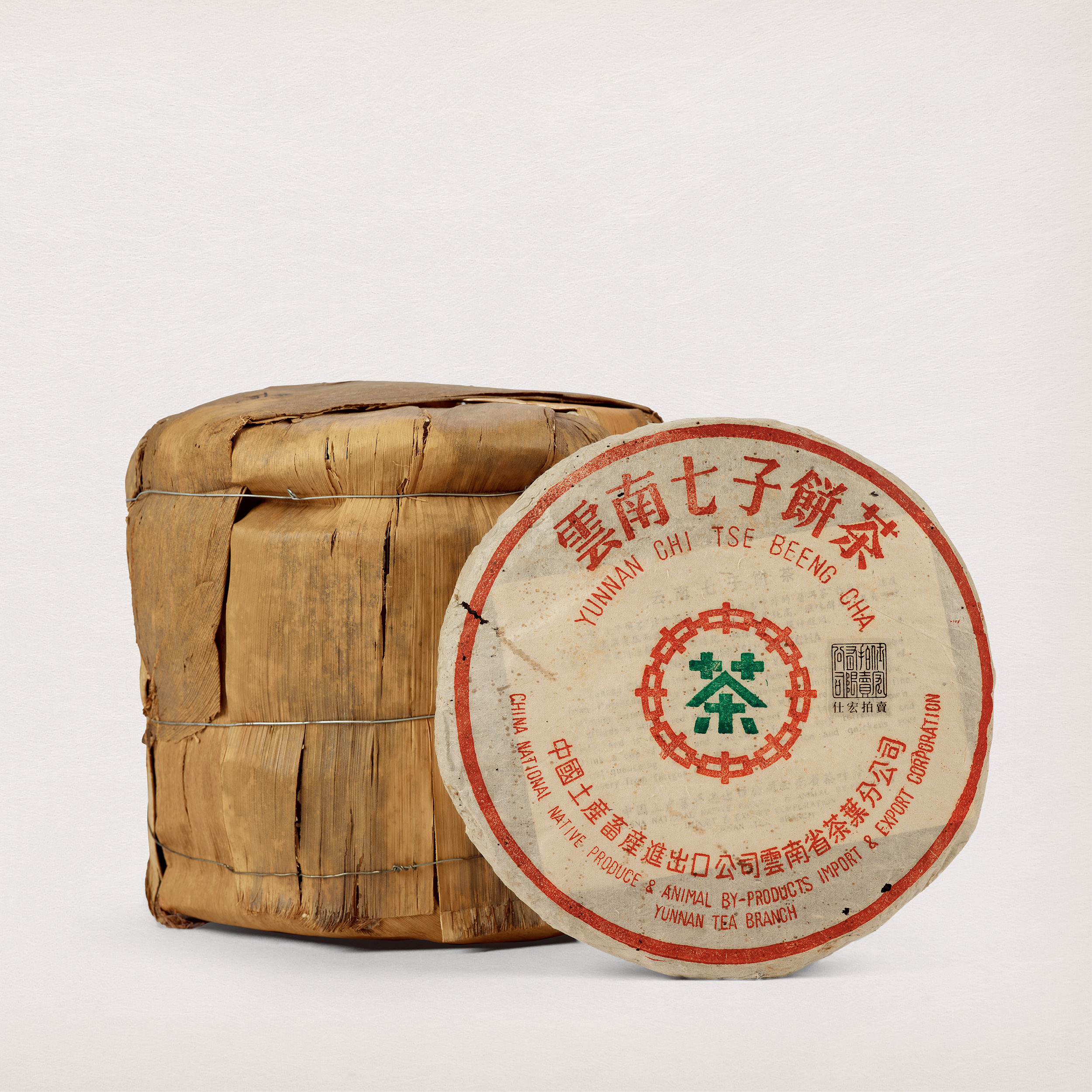 此八十年代厚紙8582青餅一筒七片,自然倉。外形圓厚端正,餅面條索肥壯,鬆緊適中,茶質出色。屬八十年代勐海經典配方精工製作,茶面用五至八級粗壯茶芽拼配,以七八級為主,陳韻有印級風範,確為中期茶精品。
