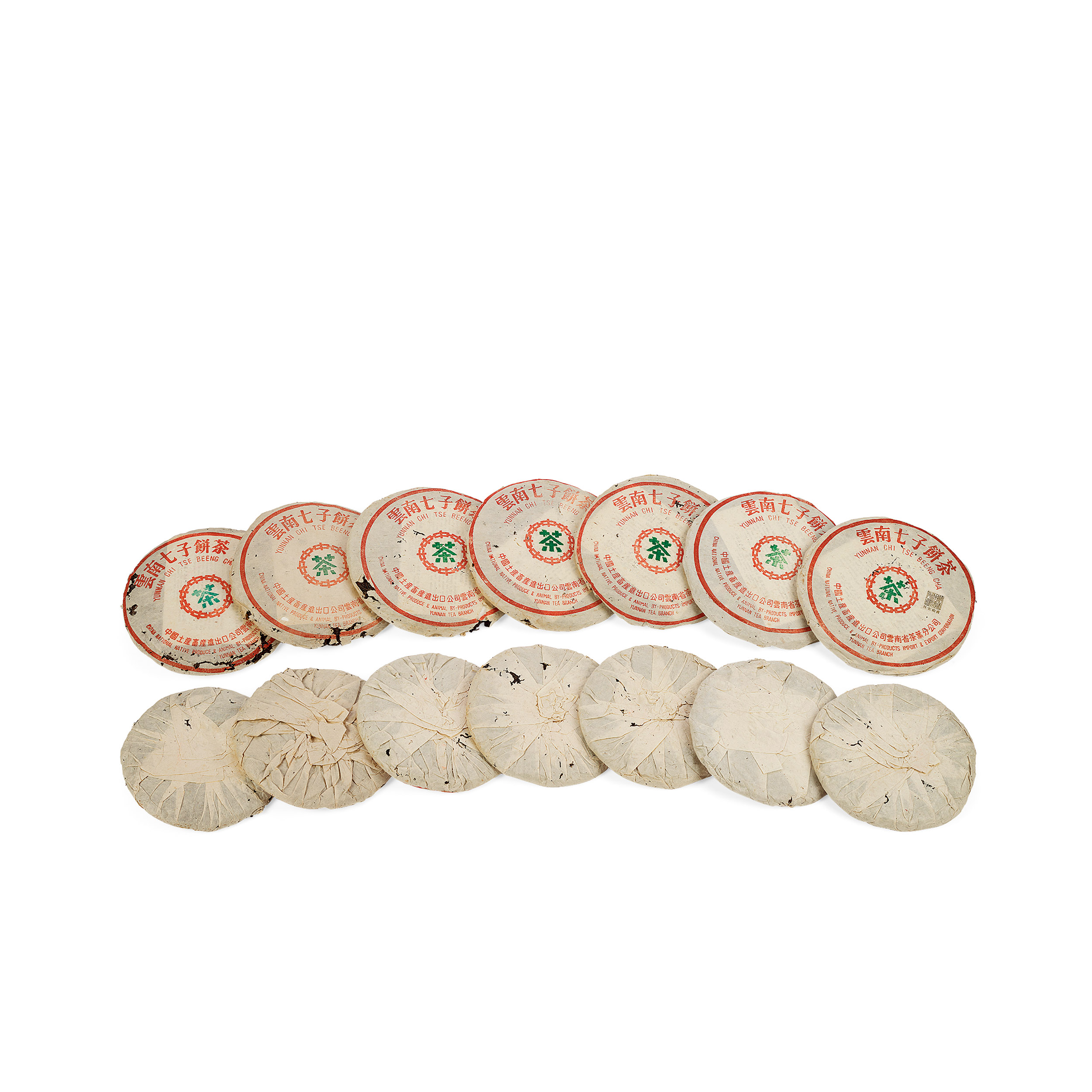 八十年代厚紙7542青餅一筒七片,偏乾倉儲,非原包,以肥壯茶菁為裏,幼嫩芽葉撒面,是勐海茶廠八十年代的經典茶品,是傳奇88青餅的前身。經四十餘年陳化,茶氣磅礴霸氣,茶性剛強,韻味飽滿,梅子韻帶蜜韻,是經典七子餅茶品。