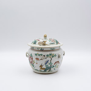 晚清 粉彩鹿鶴同著福祿富貴茶罐