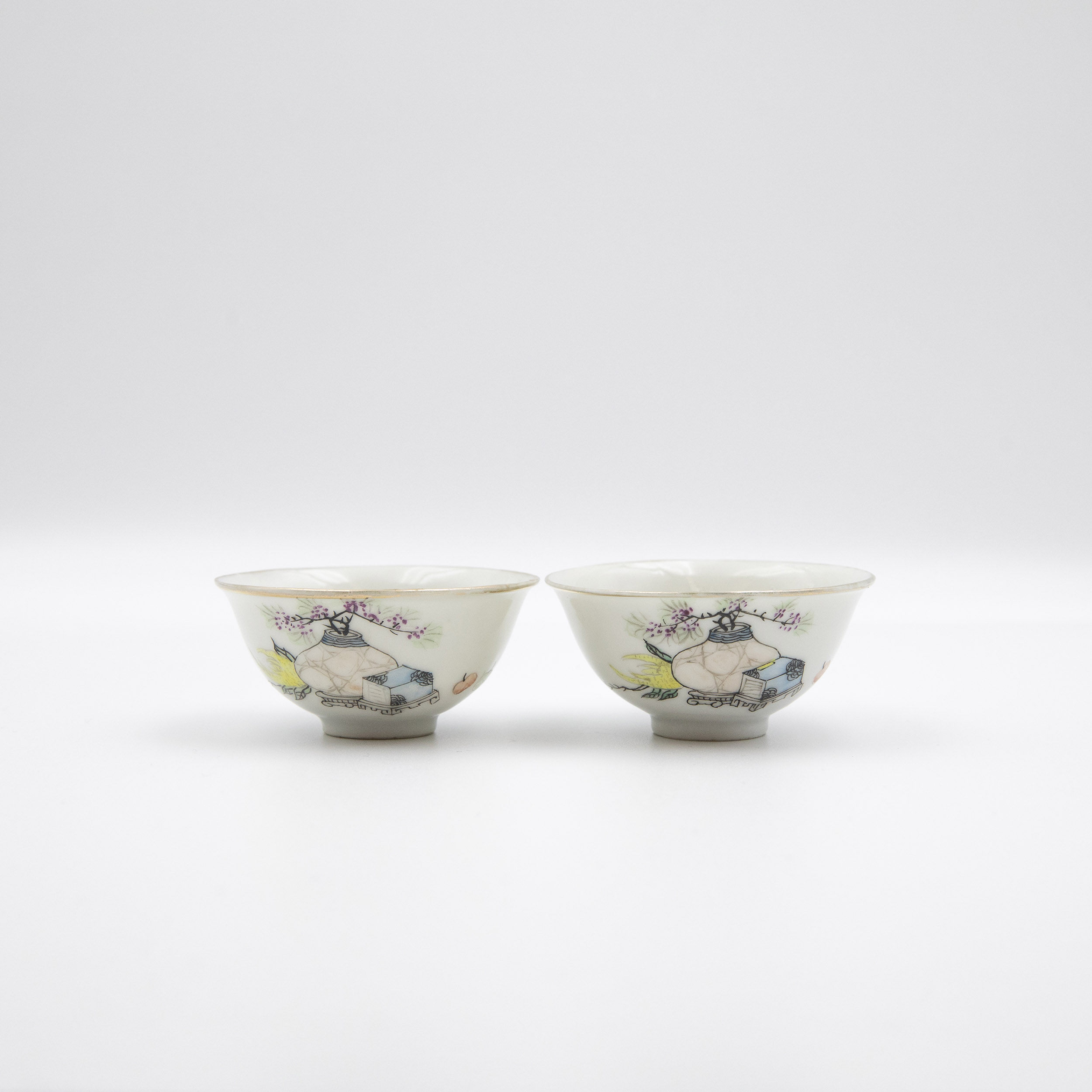 日本櫻花紋粉地杯三隻 底款:華中亭道八制