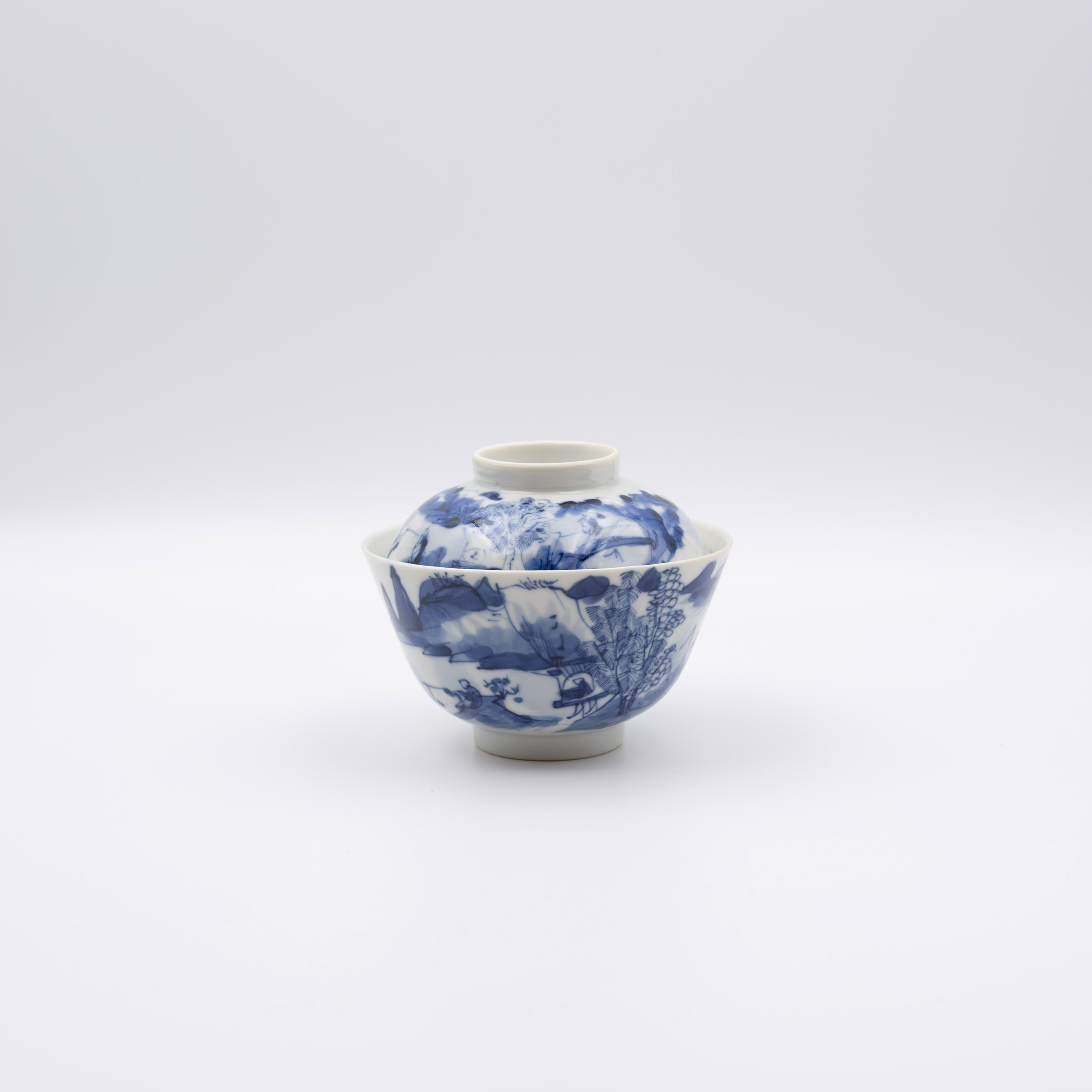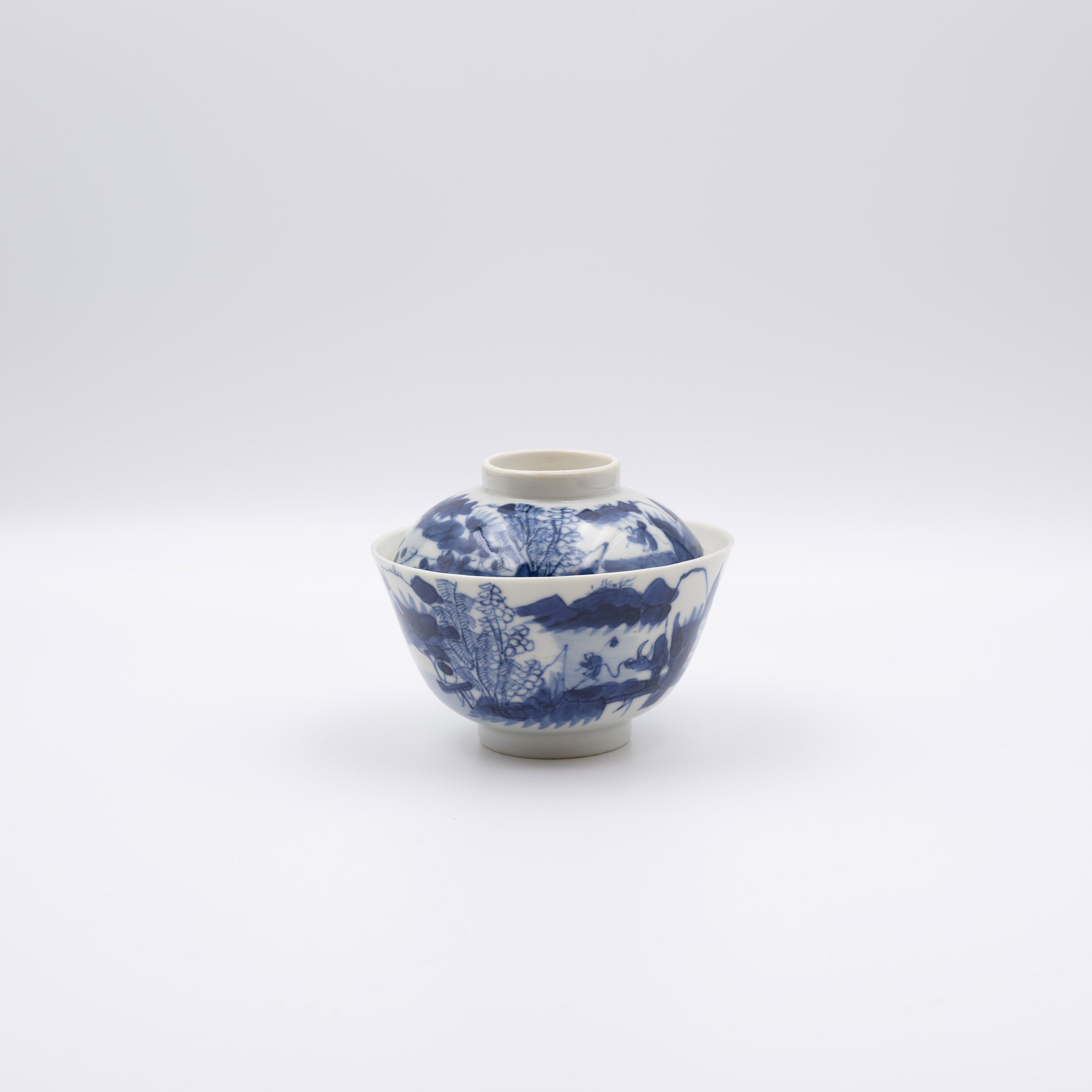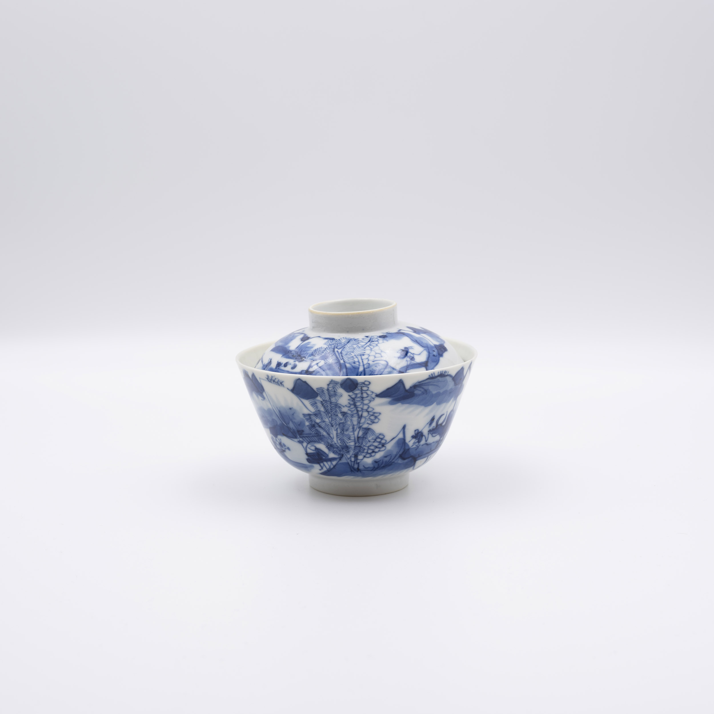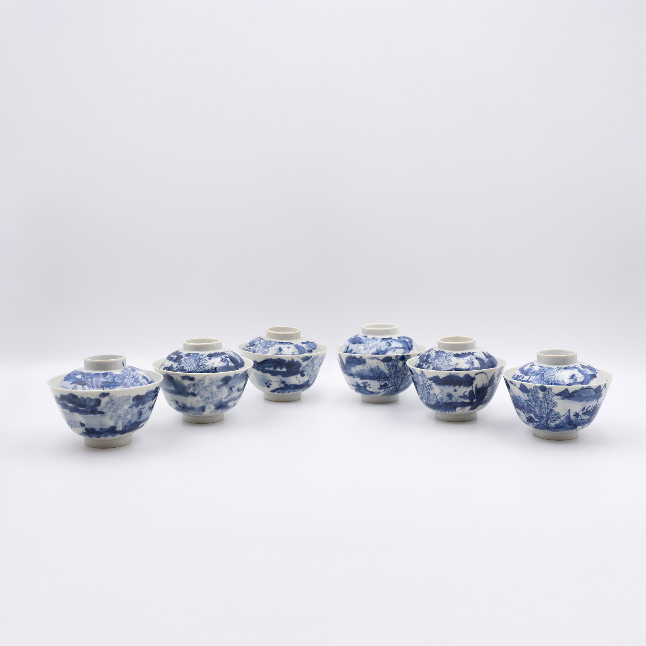 19世紀 青花漁樵耕讀蓋碗一套六件