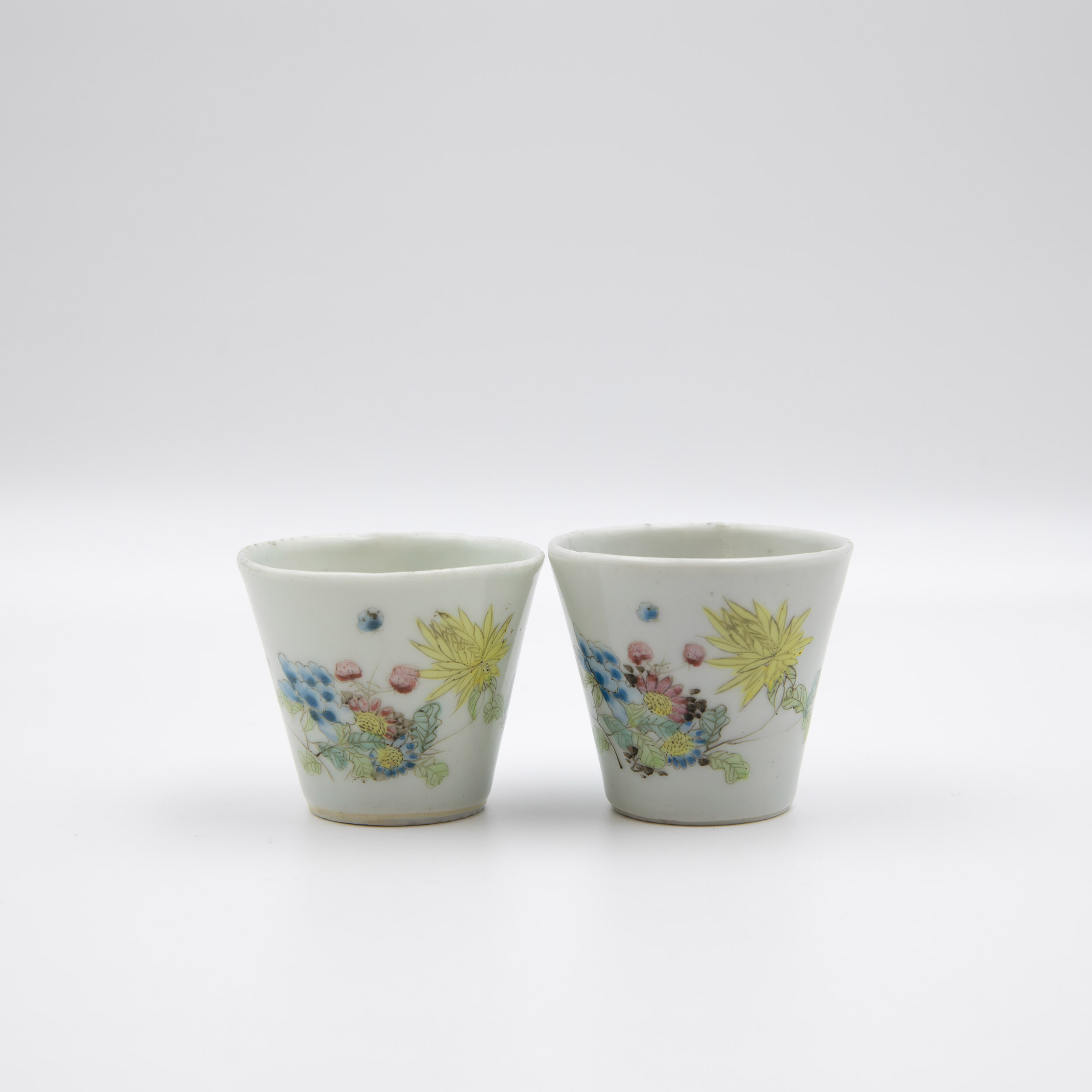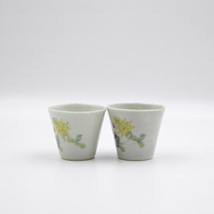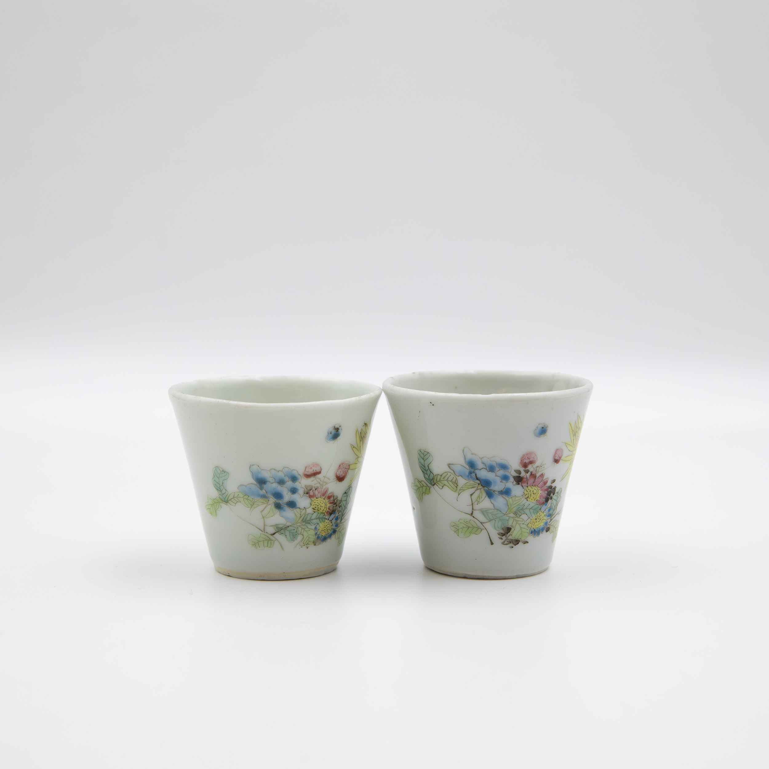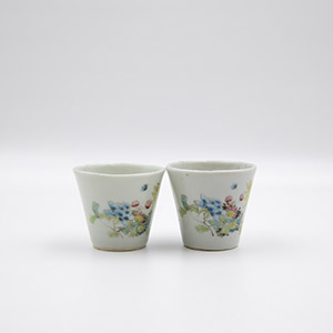 民國 粉彩花卉紋兩隻 底款:贛華出品