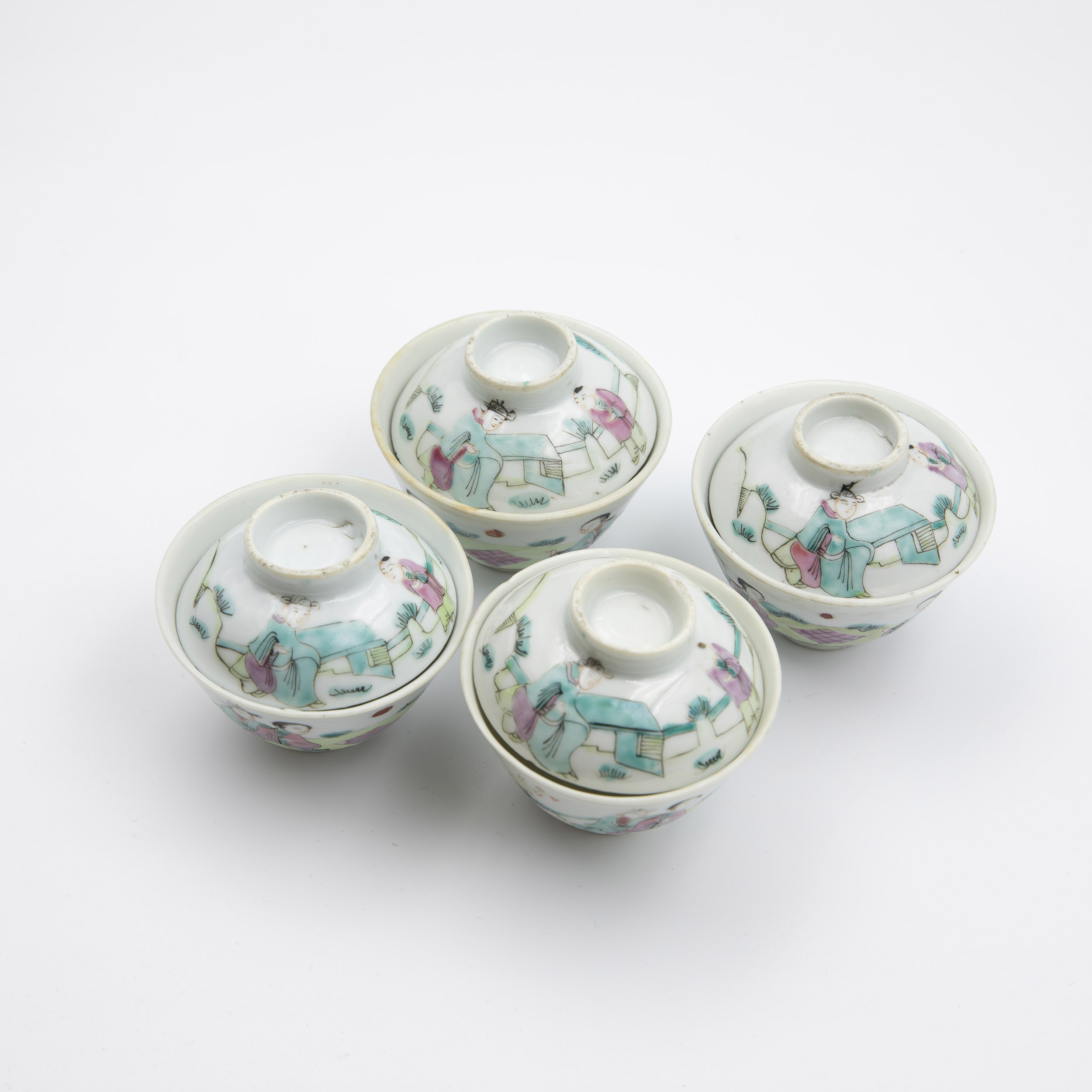 山水人物蓋碗 兩套