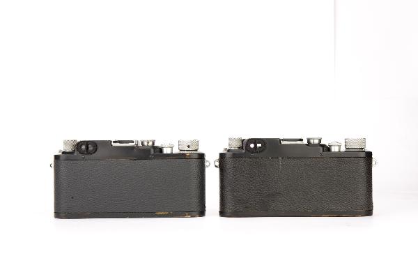 此对套机机身及饰皮均为灰色,序号后面刻有「k」字,表示为徕卡製造予德国空军使用的机型。套机分别配有Summitar 2/5cm镜头 (#586685 / #509441),两支镜头均附前盖。