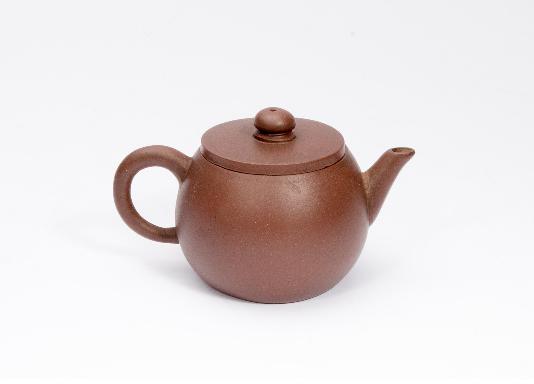 此壶平盖,落款四方篆文「万丰顺记」。壶流为一弯咀,造形小巧别緻。