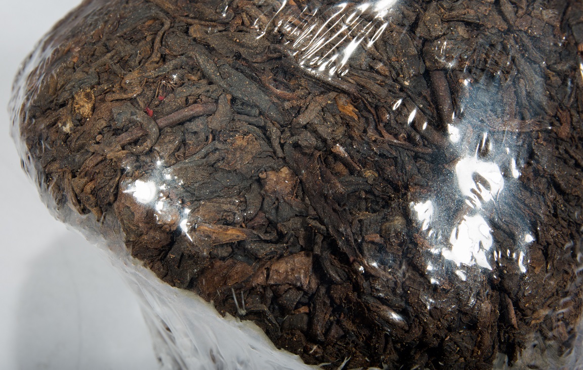 由猛景茶庄所製之紧茶来自今日普洱镇东北广「猛弄」茶山,是现存唯一的云南普洱青沱。本拍品为蓝标版本,虽然年代久远,但见中一粒能沱茶中仍可见内飞,市面难寻。