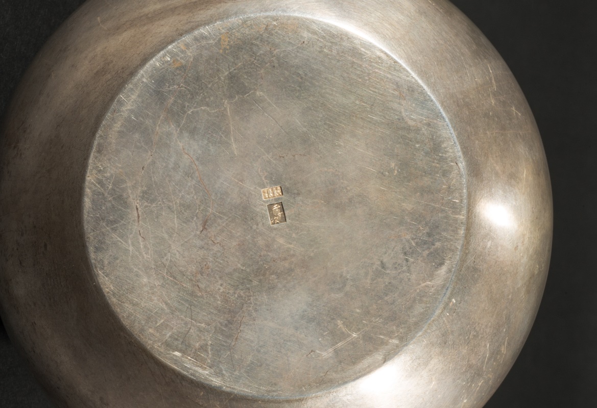 蓋內款「贈番匠君金澤絹絲協同會」,器底有款「純銀」、「孝次」;共箱,箱內題「山川孝次造」。