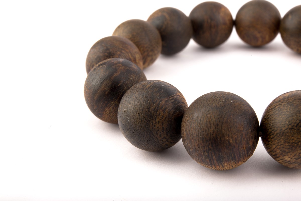 論金銀珠寶,以鑽石為首,而奇楠則被稱為香料中的鑽石。此手串自備受珍視的香中頂級綠油奇楠整料裁出,珍貴難得,含有極其豐富油脂,渾樸凝厚,十四子皆入水能沉,手感厚實沉甸。表面肌理油紋飽滿,香味清甜帶有絲絲涼味,意柔而綿長。奇楠香能通竅,有通利九竅功效,奇香無比,聞深數次,可安神緩意,猶如身臨桃源鄉,幸福至極。香木雖腐唯香節獨在,值得世代相襲。