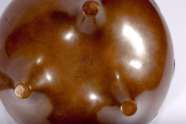 京都黑田造 金銀鑲嵌仙鶴銅香爐 雙款