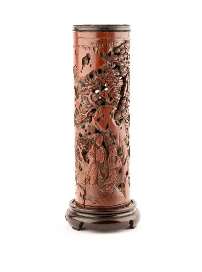 高浮雕林間撫琴紋筆筒