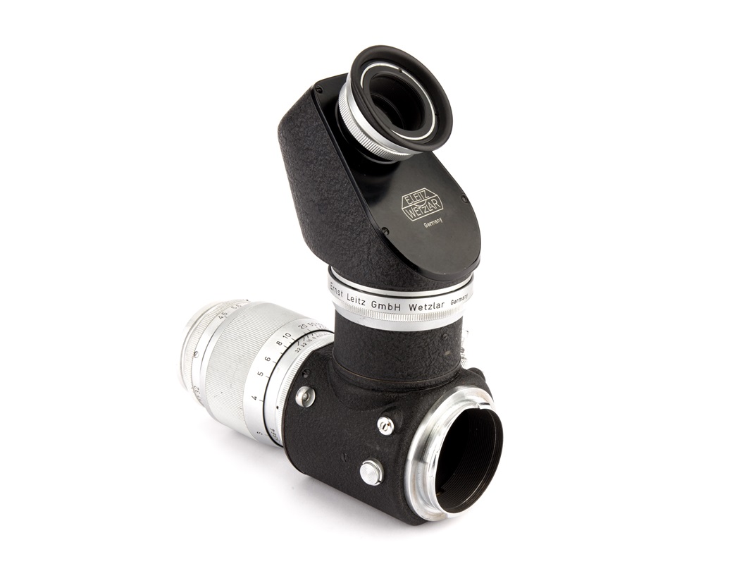 此鏡為軍用版長焦鏡頭,鏡身刻有「Bundeseigentum 12-121-5864」字樣,顯示為軍用物資。配Visoflex I (#26258)及PEGOO取景器。