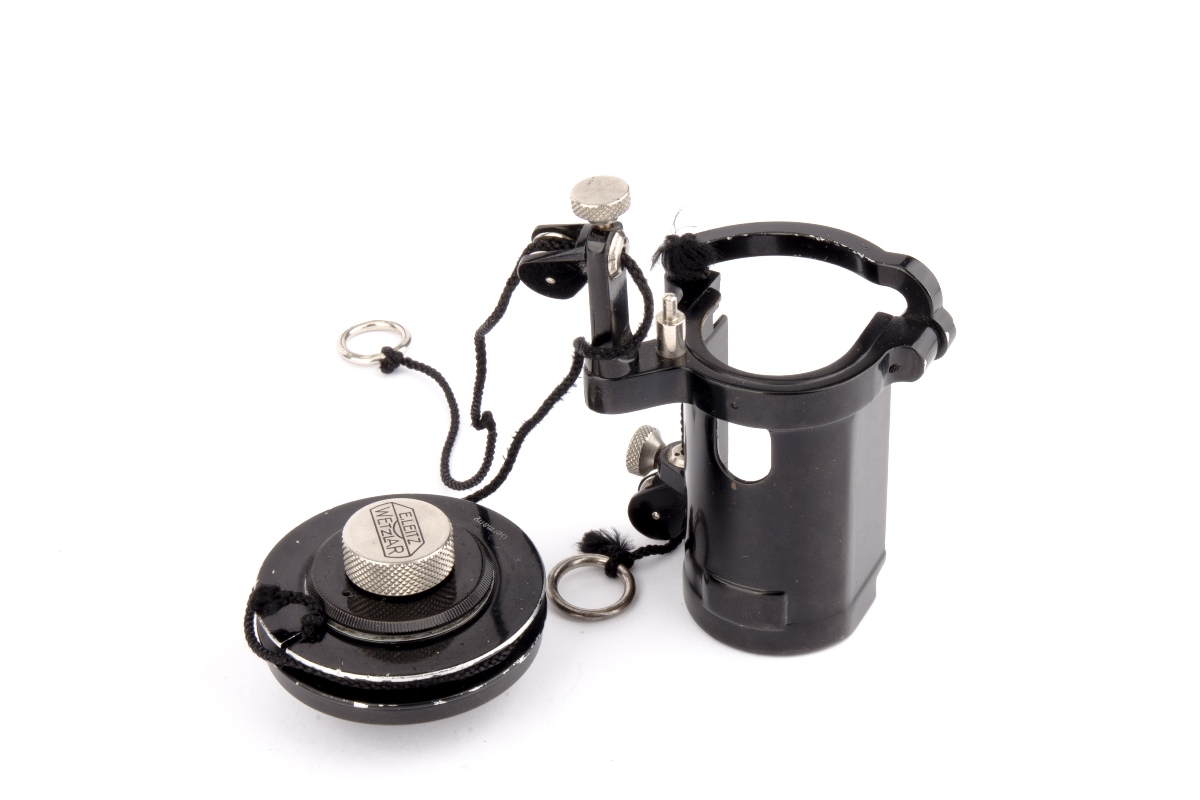 本拍品為非常罕有的手動快門調控器,產於1935至1939年間,可直接安裝在機身上使用。附有的兩條操控繩,分別用於操控快門按鈕及操控快速過片之用,可提高拍攝速度與方便性。此配件連同原裝包裝盒。