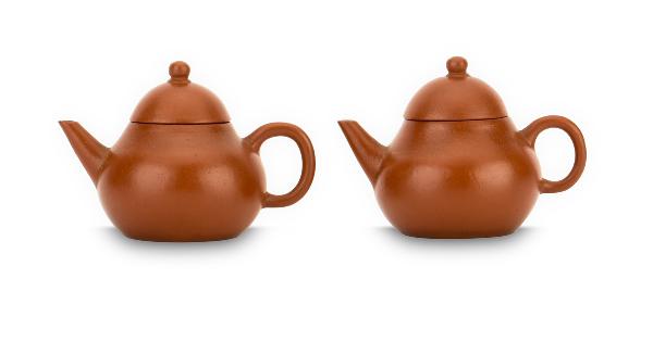 此品為朱泥胎質,泥色細潤,寶珠鈕,鼓腹收足,肩部與腹下弧度自然,線條舒展優美。壺流與壺口高度持平,出湯順暢;圓形圈把,把持舒適。器型比例協調,結構嚴謹,技藝精湛。壺底以刀刻「平桃作別煙 孟臣」,字跡工整,刀工老辣,可見落款人書法造詣一斑。