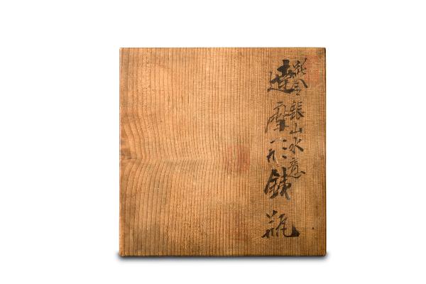 壺蓋內款「光玉堂造」;共箱,蓋面佈「錯金銀山水意 達摩形鐵瓶」,蓋內有題字。拍品嵌金銀部分狀態極良好。