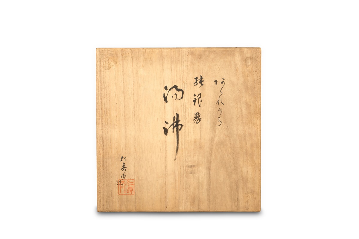 共箱,箱面題「純銀製湯沸」及「仁壽齋造」。