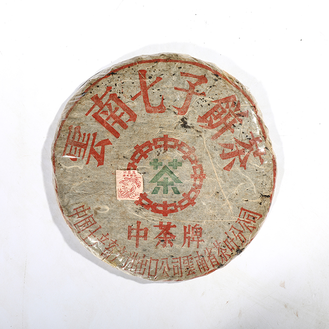 本藏品為中茶牌最早期壓製的鐵餅,特別之處是本藏品包裝底部的「中國土產畜產進出口公司雲南省茶葉分公司」為十九個字的簡體版本,產量相對較少。