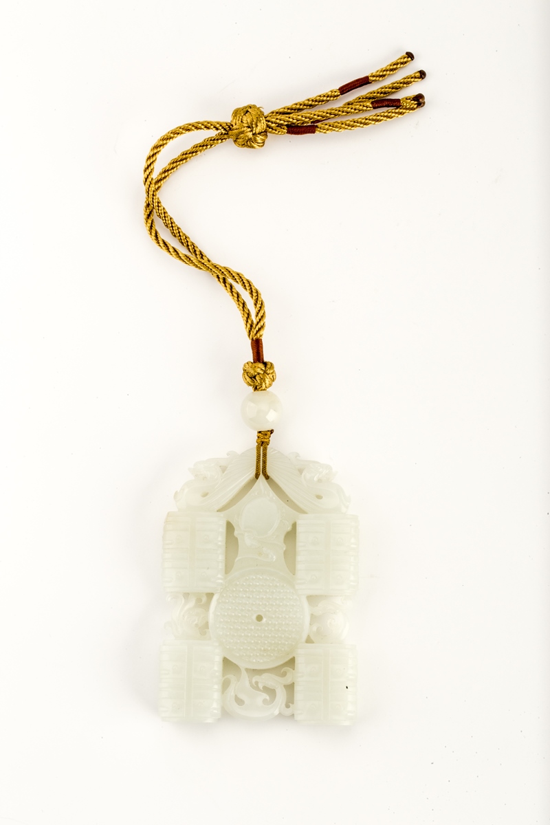 此玉以六器中其中四器 - 琮、璧、圭、璜為主題,器形端莊穩重,高雅大器。據《周禮‧春秋‧大宗伯》載,六器是古代祭祀天地四方重要之物:「以玉作六器,以禮天地四方。以蒼璧禮天,以黃琮禮地,以青圭禮東方,以赤璋禮南方,以白琥禮西方,以玄璜禮北方,是為六器。」此藏品溫潤綿密,油脂光澤,給人滋潤柔和之感,為不可多得之美品。