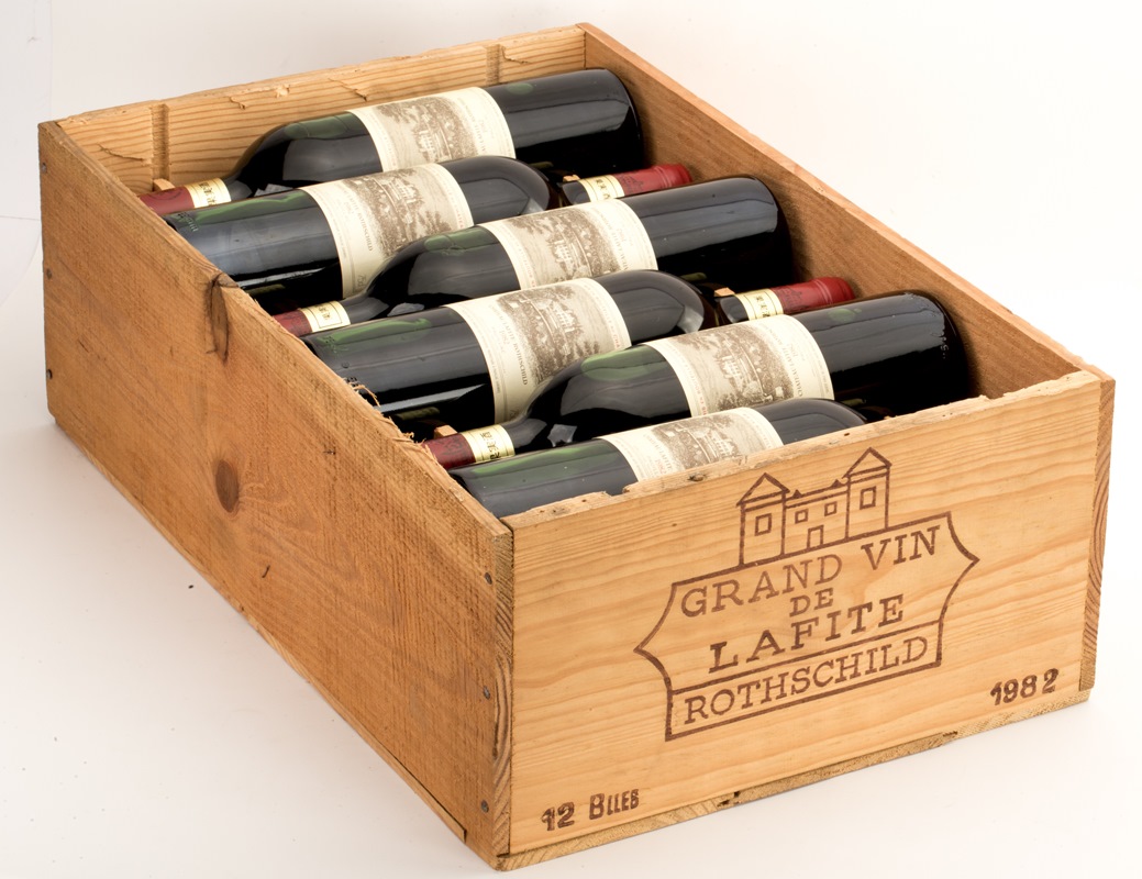 水位:3瓶至瓶頸,3瓶至瓶肩頂處,5瓶至瓶肩極高處,1瓶至瓶肩中。原裝木箱,整體外觀完好。完整一箱十二支的82年拉菲愈見罕有,值得收藏。