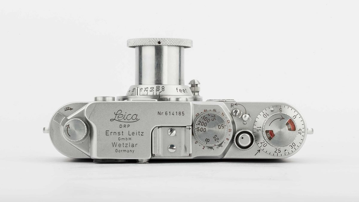 此銀色IIf機身連同Elmar 3.5/5cm鏡頭 (#1013409) 及鏡頭蓋。