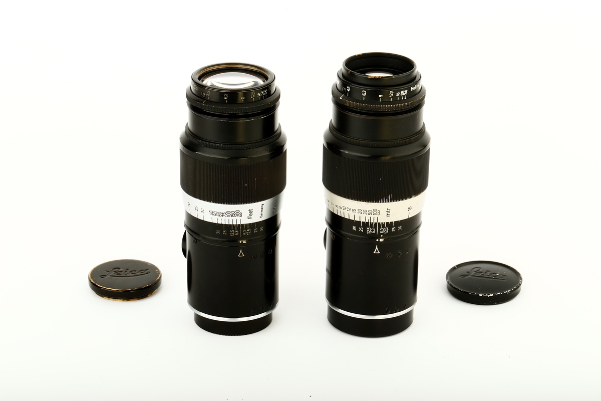此組鏡頭最特別有趣之處是序號590249的鏡頭,由於生產過程出錯,所以由原來的13.5cm刻為3.5cm。而此對鏡頭均是極早期的鍍膜版本,鏡身為啞黑漆,配有前後蓋。