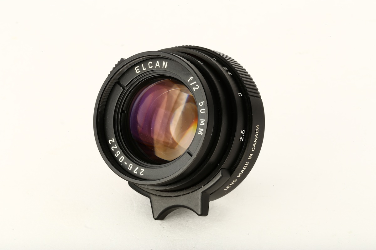 此Elcan-M 2/50mm是徠卡為美國軍隊所特別研發,用以配備KE-7A相機的鏡頭,連同民用版在內,產量只有505支。產於加拿大,鏡頭採用4片4組設計,擁有超高解像度。此鏡連同鏡頭前後蓋,市場較罕見。