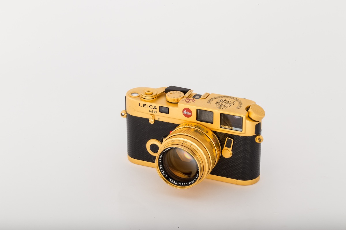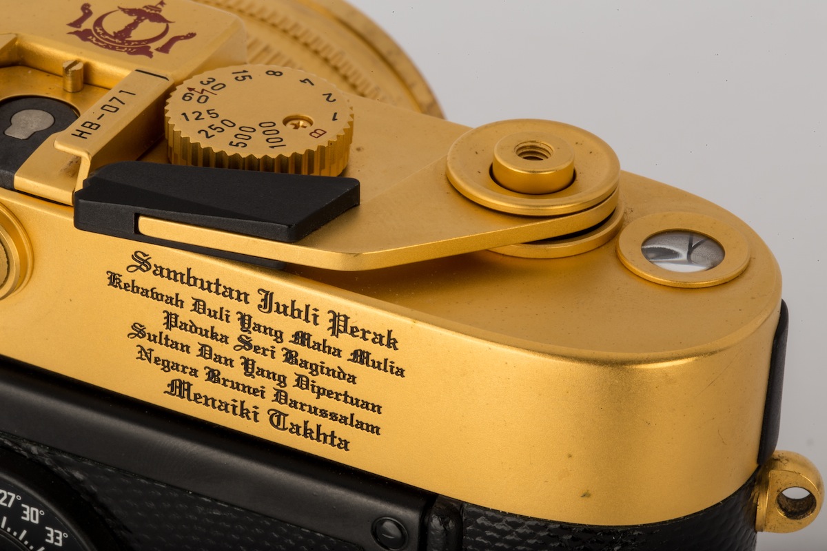 1992年10月1日,汶萊國王登基25週年,汶萊皇室為此向徠卡訂製了350台24K鍍金的M6 連Summilux-M 1.4/50mm套機作為紀念及饋贈賓客,從未對外公開發售。紀念機的紀念號碼由HB-001開始,此拍品的紀念號為HB-071。M6機頂上刻有汶萊的國徽,機背刻有「Sambutan Jubli Perak」字樣,彰顯皇室尊貴地位。此套機連24K鍍金的Summilux-M 1.4/50mm鏡頭 (#3653527),鏡頭前刻有「Sambutan Jubli Perak 5 Oct 92」的字樣,連木盒及鏡頭前蓋。