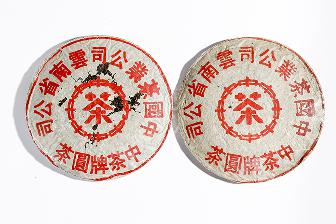 此藏品為九十年代末昆明茶廠製造的青茶,以金屬模具壓製而成,餅型緊實,包裝及品相俱佳。