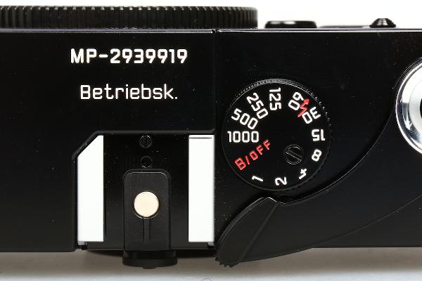 此MP機的機頂上刻有「Betriebsk」字樣,是供予徠卡工廠內部使用的相機。此機連同與機身號碼相同的包裝盒,因只供工廠內部使用,盒上並沒有貼上正式銷售時的貼紙,此類MP工廠測試用機在市面上十分罕見。連同包裝、相機帶、電池及證書,運作暢順,成色如新。