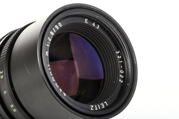 此鏡為 Elmarit-M 2.8/90mm的原型版,它多處特徵均與正式生產的產品不同:光圈及景深尺最小為16,但正常量產版的則為f/22;拍品口徑為E43,而正式產品是E46;鏡頭前數字環為平口,正式為斜口;鏡身較短,遮光罩亦較正式產品短;調焦環數字比正式產品多出15m一檔;該鏡頭的光學技術研發編號為321。另外,此拍品的鏡頭編號並非在正常生產之列,產量甚少。連鏡頭前後蓋。