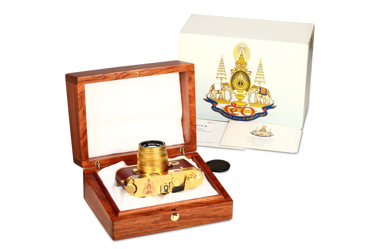 1996 年,為慶祝泰國國王登基 50 週年而特別訂製,限量700 台,此機紀念號碼為 HM-641。機身為 24K 鍍金,配Summicron-M 2/50mm鏡頭(#3695641-HM 641),機身貼上棕紅色蜥蝪皮。機頂刻有泰王專屬印徽,是收藏家心目中完美的紀念機之一。連精美木盒、包裝紙盒、尼龍帶、 Leica鏡頭布、機身蓋、鏡頭前後蓋、證書。全新未經使用。