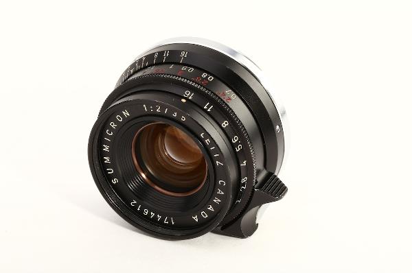 較早期的加拿大製Summicron-M 2/35mm黑色八枚玉鏡頭,調焦環為紅字,玻璃明亮﹔配有鏡頭前後蓋。
