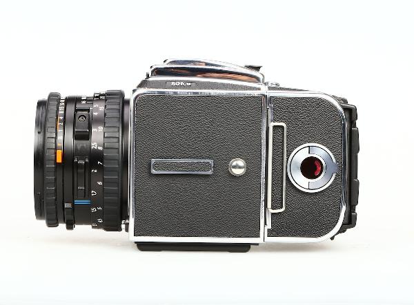 經典的哈蘇501CM機身配CFE Planar 2.8/80mm鏡頭(#8805090)及A12後背(#30EU12683),連同鏡頭前蓋,成色極新。