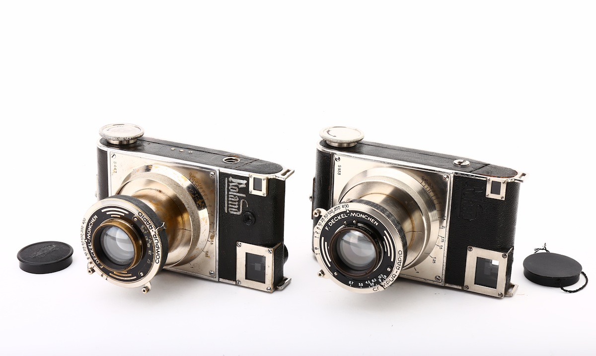 德國品牌Roland 6 x 4.5相機於1933年發明,是一款120mm菲林格式的旁軸相機,每次可拍16張照片。此對機是初期及後期產品,分別連同兩支較盛名的Plasmat 2.7/70mm銅色鏡頭#572222及Plasmat 2.7/7cm黑漆鏡頭#38051,均是六片五組的設計。此套機較接近原廠狀態,市面較少見,相機均連同鏡頭前蓋,有使用痕跡。