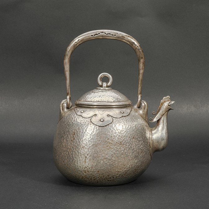名越彌五郎 昌晴造 槌目寶珠形鳳口銀壺