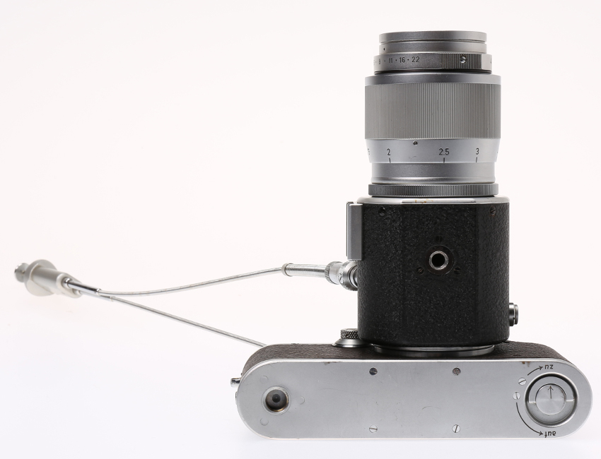 此IIIf相機配有Elmar 4/135mm鏡頭(#1768621),另配有Visoflex I (#22657)、45度放大器(PEGOO)及雙頭快門線。這款快門線可同時操作機身和Visoflex反光鏡。相機操作良好,帶鏡頭蓋。