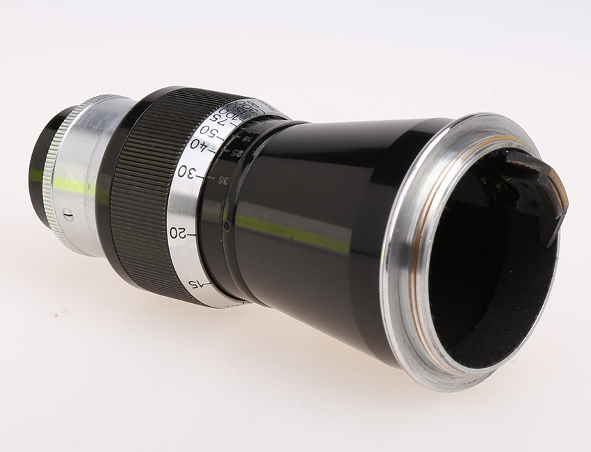 德國生產的Mountain Elmar 6.3/10.5cm螺絲口,鏡身使用黃銅及合金所製造,鏡頭玻璃清澈,成色完美,超過70年仍保持這完好成色實在難得。鏡頭配有遮光罩連蓋及鏡頭底蓋。