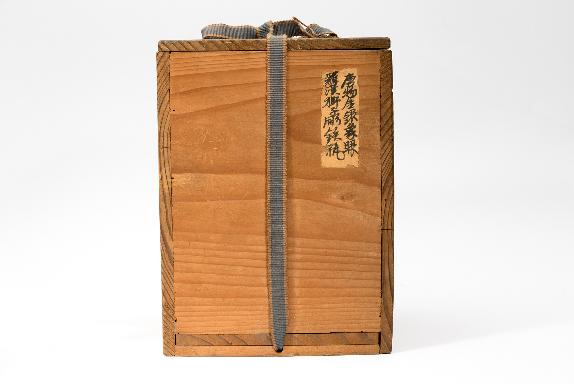 箱籤:唐物金銀象眼 羅漢獅子雕鐵瓶