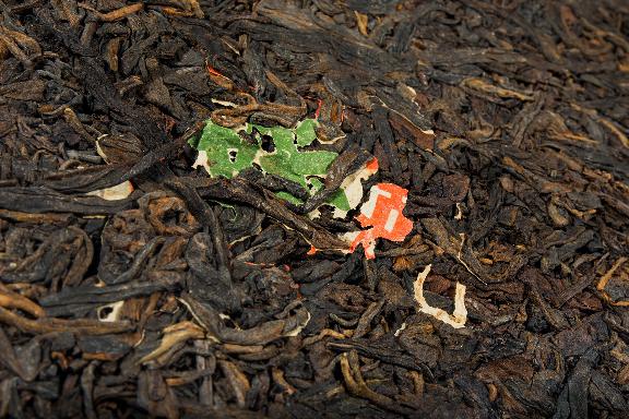 本拍品為陳放超過半世紀的無紙紅印,散發著豐富的陳韻;餅身茶葉烏潤有光,茶菁條索粗壯飽滿,倉存較乾,中茶商標內飛清晰可見。