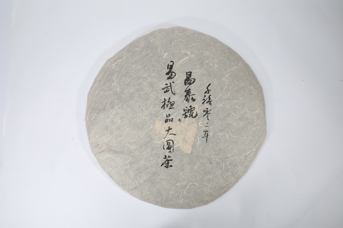 由雲南西雙版納昌泰茶行勐海分行出品的生茶,重達3,000克,附內飛,市面較罕見,是易昌號當時的招牌代表作。其餅形端正,色澤金黃,條索壯實。其中一片的包裝紙上題「千禧零二年 昌泰號 易武極品大圓茶」。