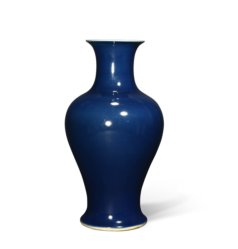 此藏品是藍釉瓶,屬古陶瓷中較名貴的品種,線條優美典雅。侈口、短頸、豐肩、肩下弧線內收,瓶體修長,線條流暢。藍色象徵著天,因此藍釉瓷又具有一種特殊的文化含義,為貴人藏用,值得收藏。